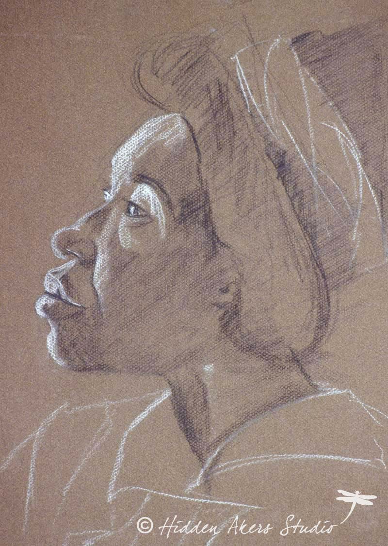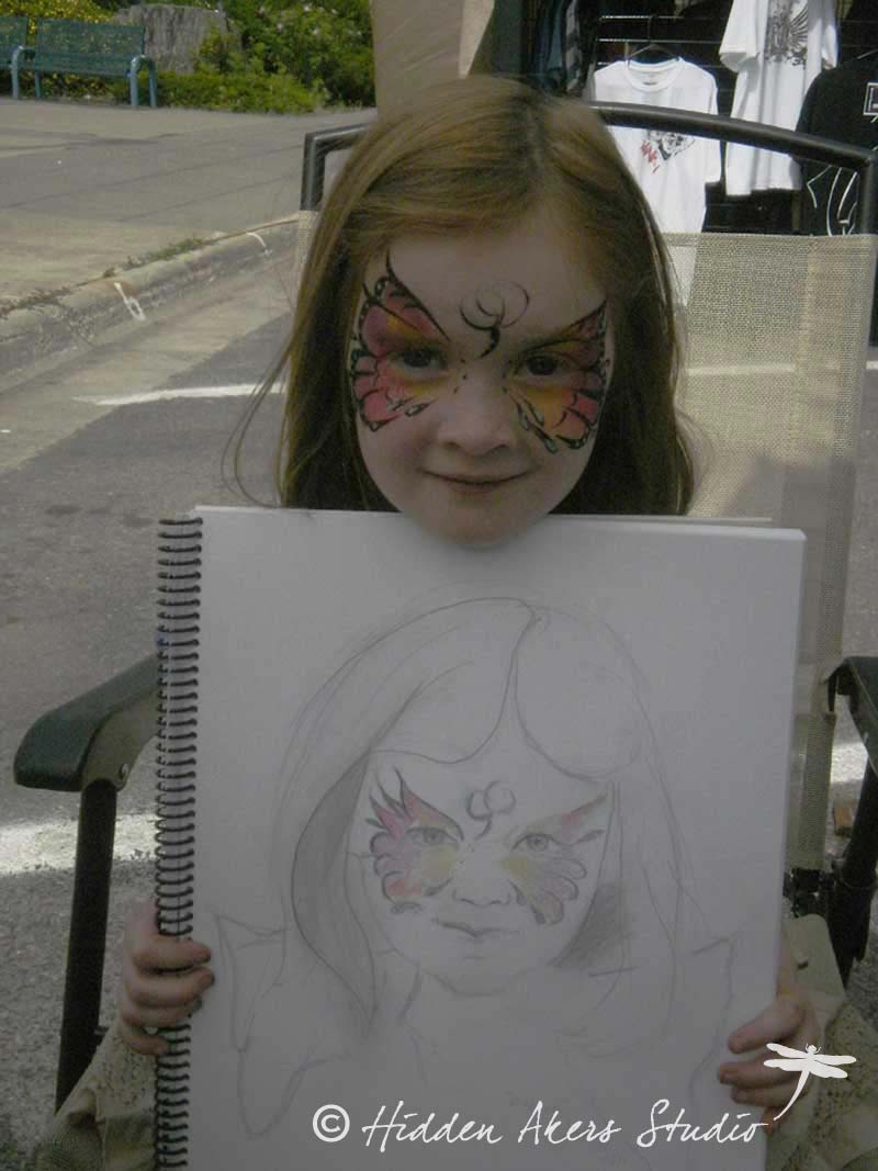 “Butterfly Girl”¸ 11” x 14”. Quick-sketch drawn at art festival.