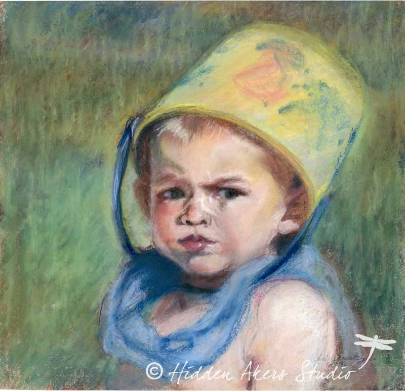 “Bucket Boy”¸ 11.5” x 11.5” Pastel on paper. Prints available for sale.