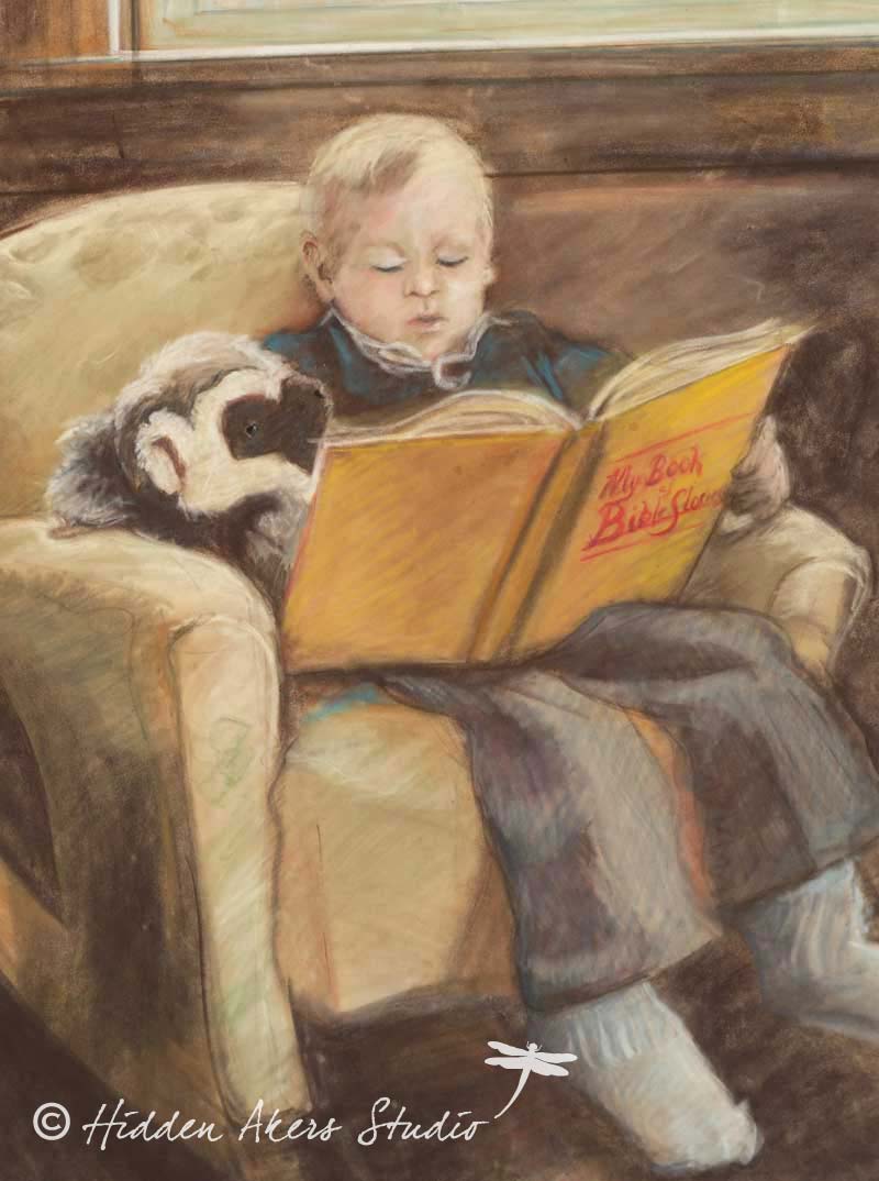 “Boy with Book”¸Commissioned portrait, 18” x 24”. Pastel on board.