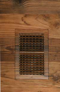 This barnwood ceiling would not be the same filled with white electrical recessed lighting and heating vents!