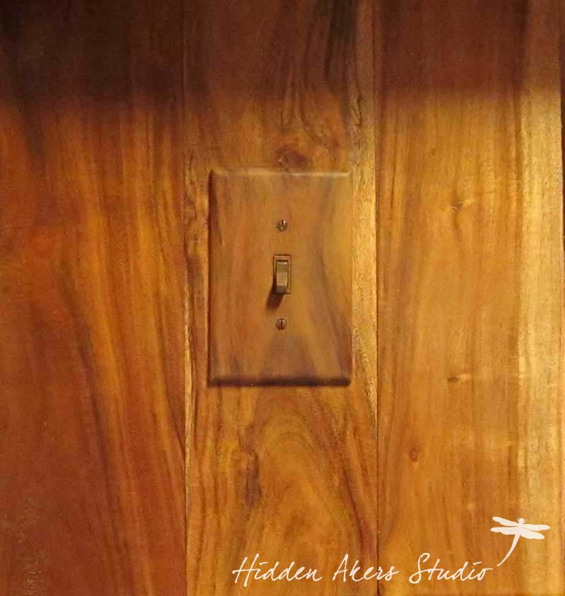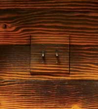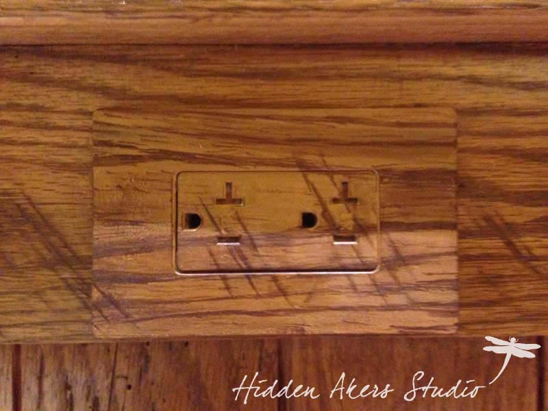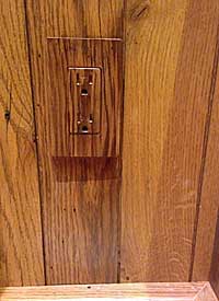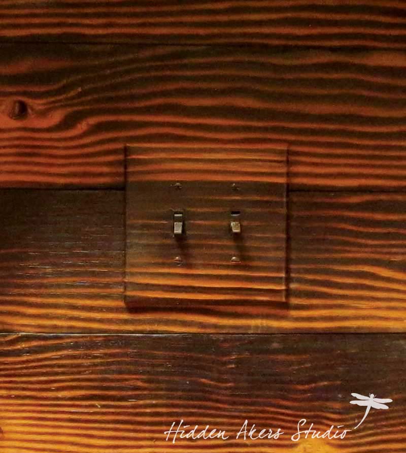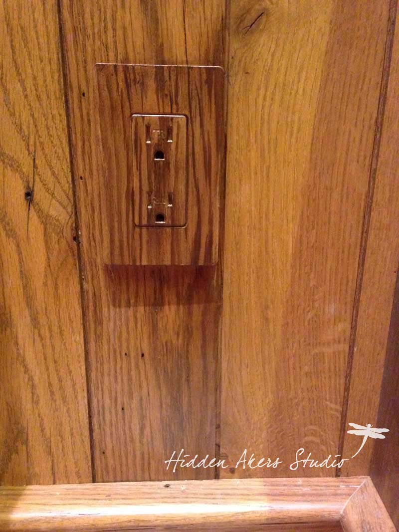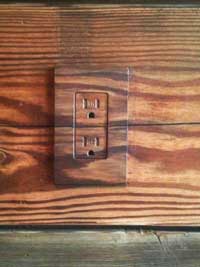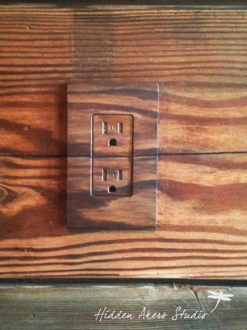This is a sample of faux painting a white outlet to replicate the rustic wood surrounding it. This outlet is just paint on white plastic!