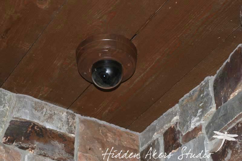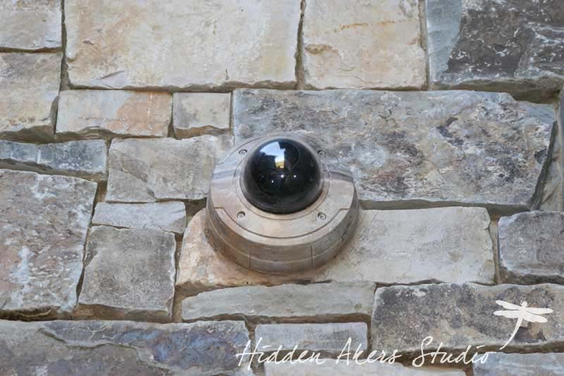 Faux painting can be used to disguise large exterior electrical devises such as this security camera.